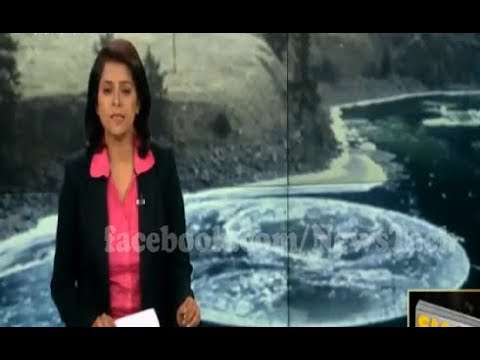 বরফে জমে যাওয়া নদীর একটি ঘূর্ণায়মান বরফের বৃত্তির আকশনের কি হচ্ছে দেখুন